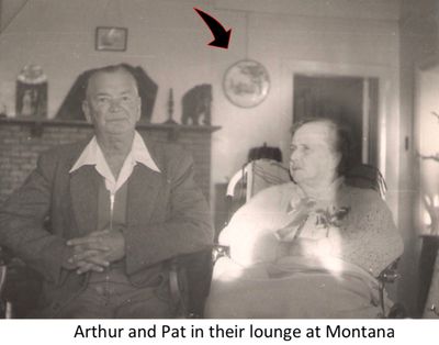 (The photo of Arthur and Pat in their lounge at Montana is appended for more than just provenance! The plate on the wall between my Gran and the elephant, is Royal Doulton. After Arthur passed away, it found it’s way to Edna who then bequeathed it to her favourite godson! It has graced our various lounges for decades now.)